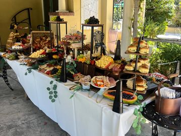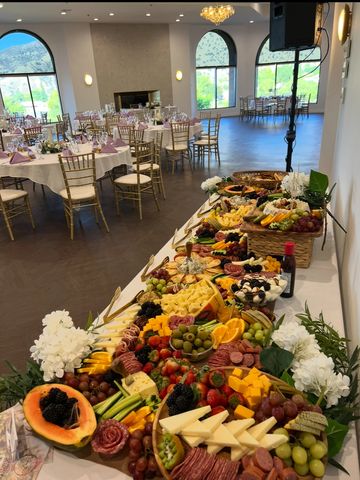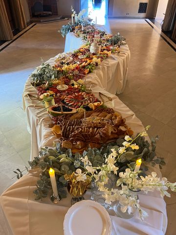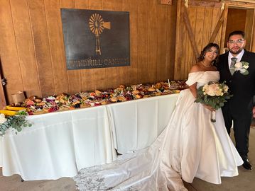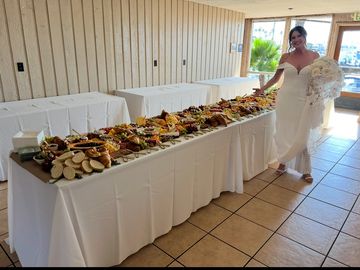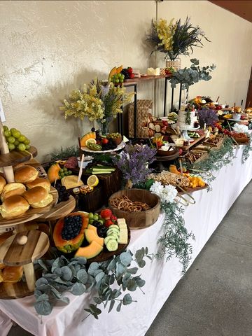 Weddings are the heart of Juno Bee Charcuterie—our signature grazing tables offer a stunning, efficient way to serve large crowds. Each flat lay feeds approximately 8–10 guests per foot and is priced at $115 per foot, plus travel and taxes. A minimum of 50 guests is required.