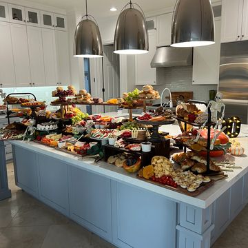 Our bottomless charcuterie cart is a two-hour, unlimited grazing experience where each guest selects their favorite cheeses, meats and fruits-and our team handcrafts a custom mini board for them to enjoy. Guests are welcome to return as many times as they'd like throughout the service window for fresh, made-to-order refills. Minimum of 50 guests per event. Travel and taxes apply.